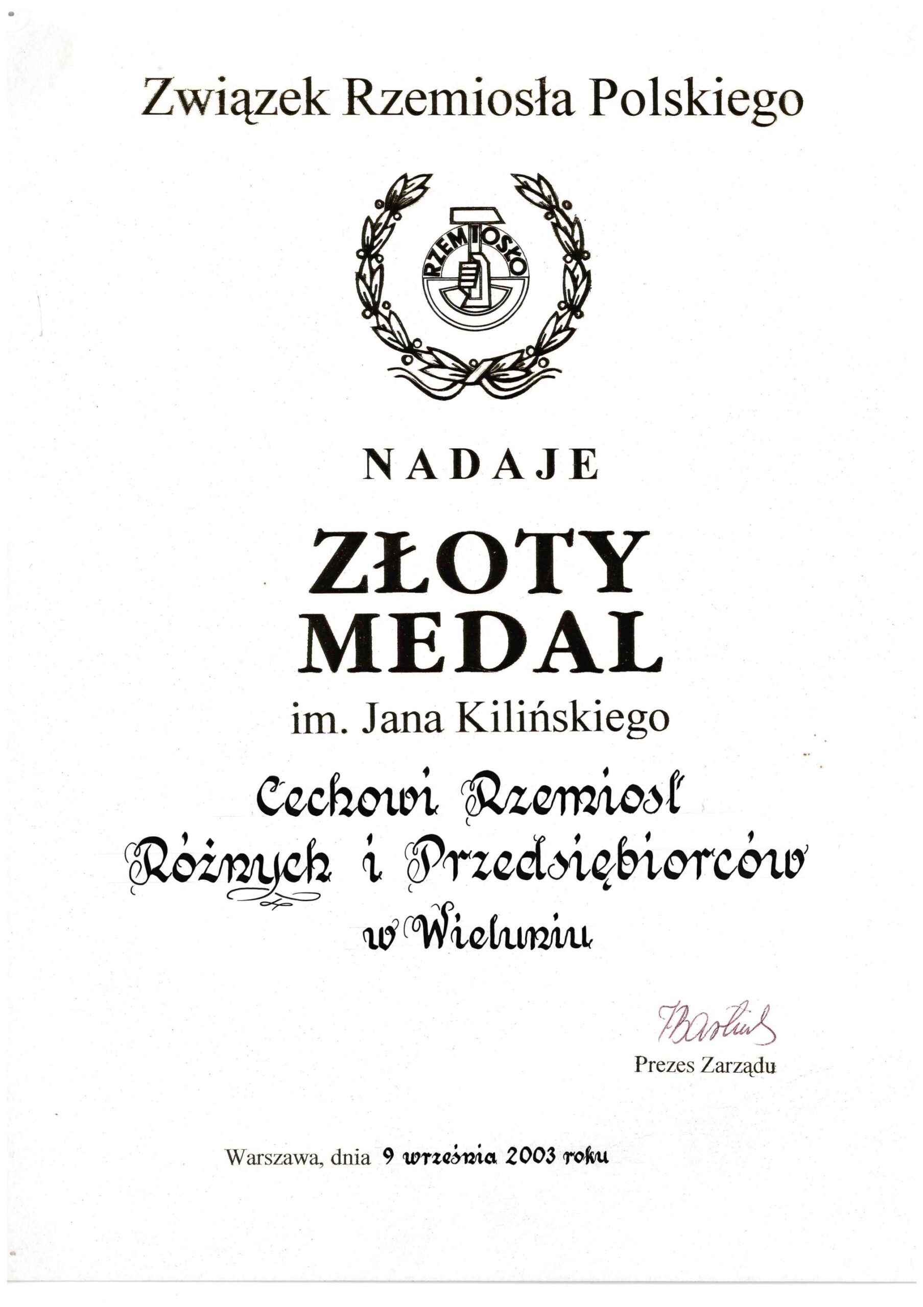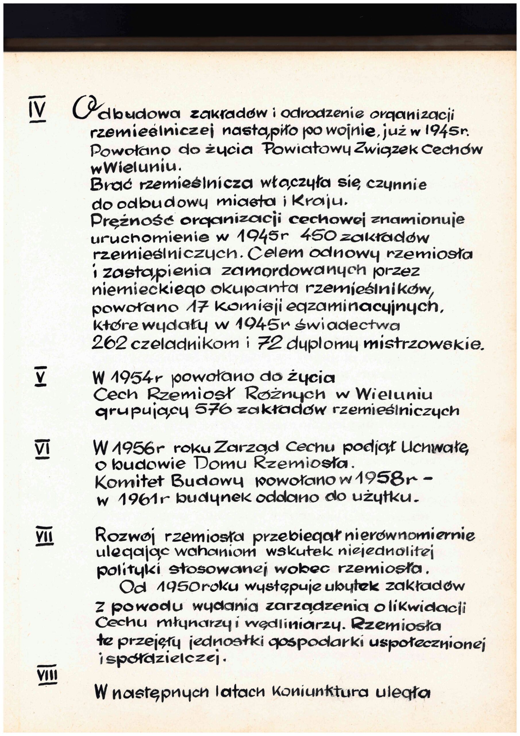 W pierwszym okresie rozwoju rzemiosła już w XIII wieku w Wieluniu pojawili się kowale, ślusarze, bednarze, muratorzy. Tu przebywał Władysław Jagiełło gdzie prowadził pertraktacje z Krzyżakami, gdzie Wieluńscy kowale – kuli miecze na Bitwę pod Grunwaldem.